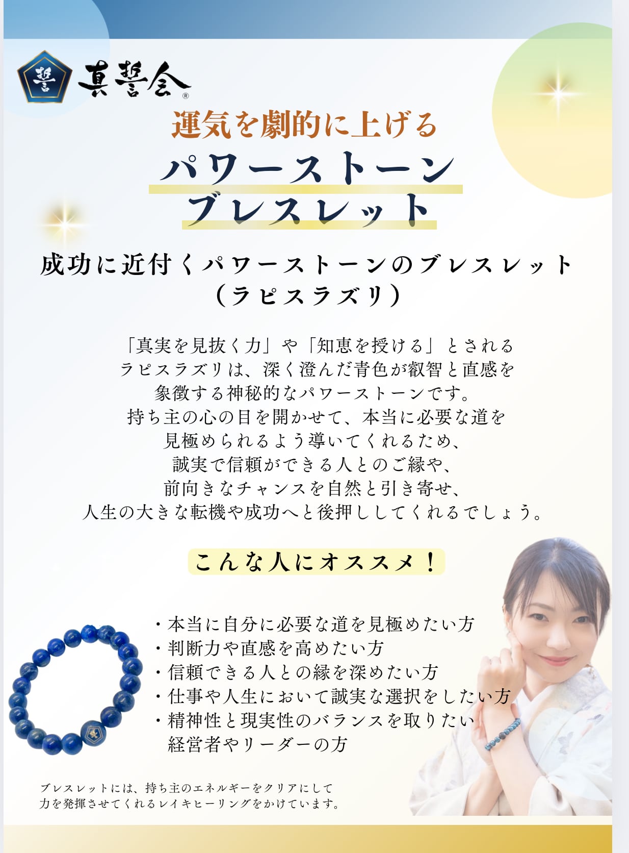 【真誓会】成功に近付く天然ラピスラズリパワーストーンのブレスレット Sサイズ