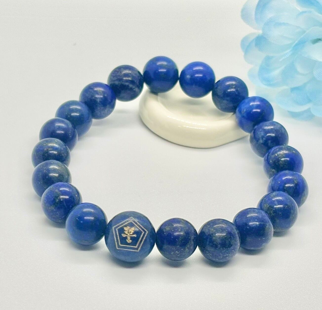 このブレスレットは「真実を見抜く力」や「知恵を授ける」とされる天然のラピスラズリを使用しています。